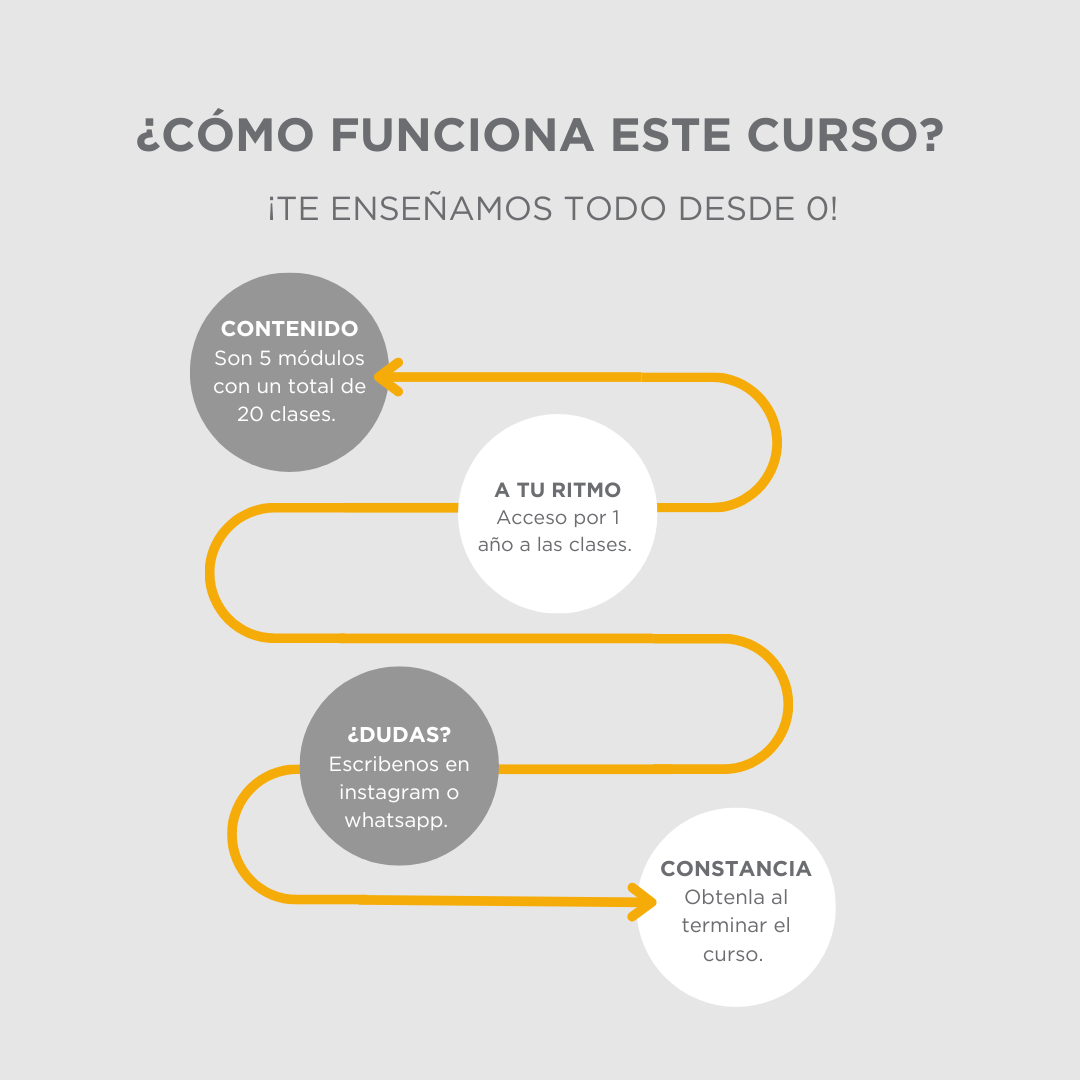 Son clases online pregrabadas, con acceso al curso por 1 año, puedes ver las clases cuando quieras y las veces que sean necesarias.