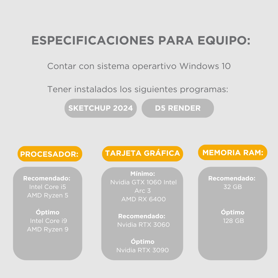 En este curso aprenderás a realizar renders de calidad fotorrealista, con los programas de Sketchup y D5 Render.